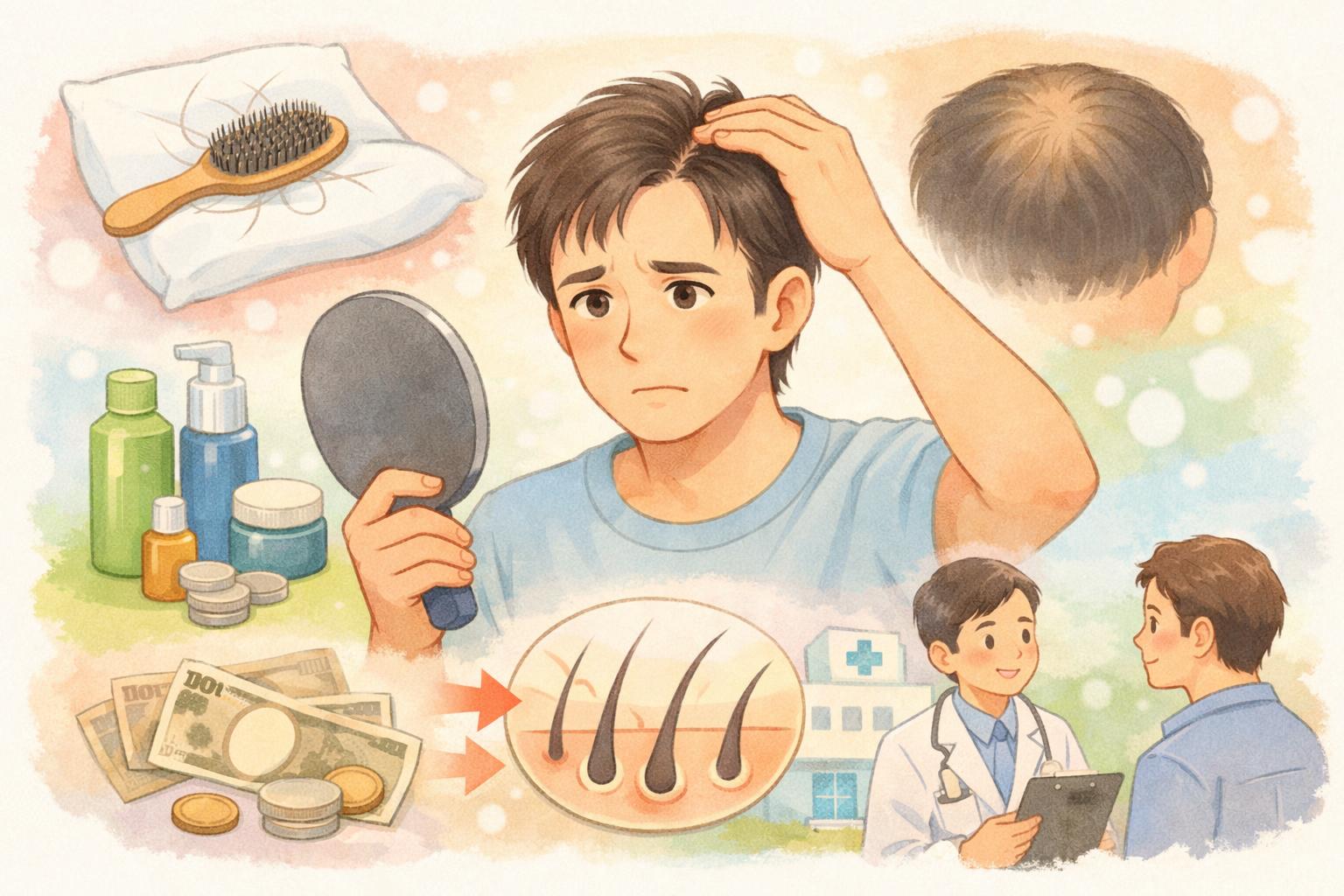 鏡を見るたびに気になる生え際や頭頂部、枕に増えた抜け毛など、薄毛の悩みは深刻ですよね。対策を始めたいと思っても、育毛剤やクリニックなど選択肢が多く、どれが自分に合っていて、いくらかかるのか分からず一歩踏み出せない方も多いのではないでしょうか。この記事では、薄毛の主な原因から、月々5千円以内で始められるセルフケア、市販の育毛剤・発毛剤、AGAクリニックでの専門治療まで、費用別に具体的な対策を網羅的に解説します。それぞれの効果と料金を比較することで、あなたの予算と目的に合った最適... -
